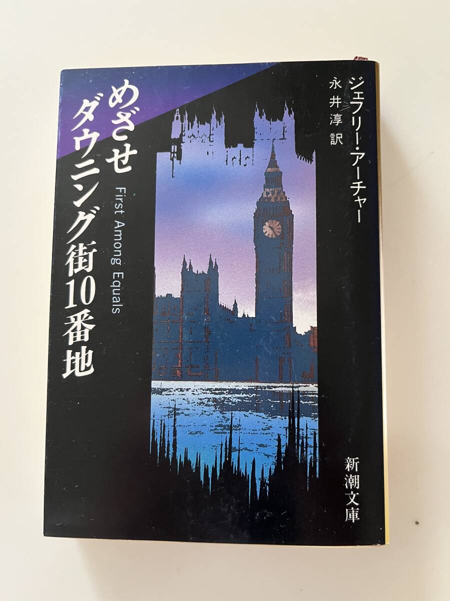 - ジェフリー・アーチャー『めざせダウニング街10番地』(新潮文庫、昭和63年、13刷)、カバー付。550頁。