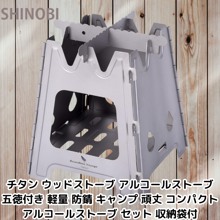 > チタン ウッドストーブ アルコールストーブ 五徳付き 軽量 防錆 キャンプ 頑丈 コンパクト アルコールストーブ セット 収納袋付