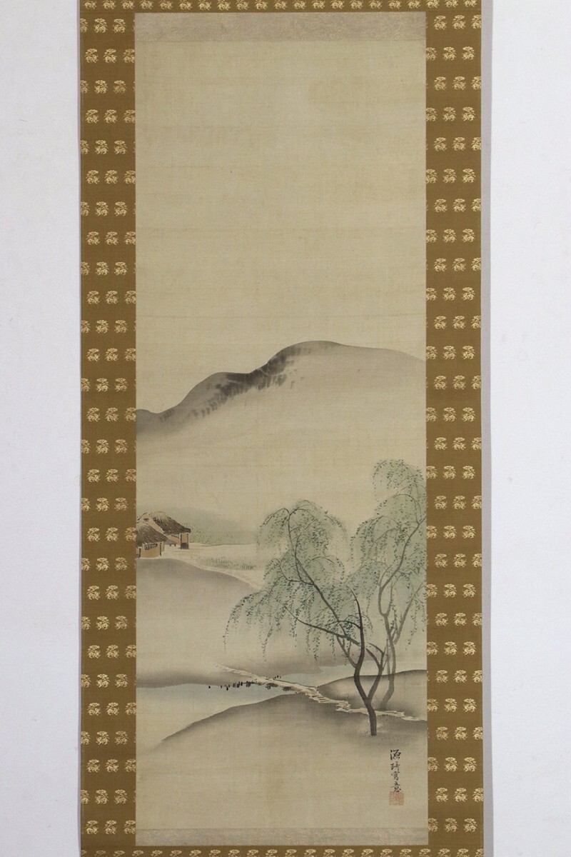 - 【真作 美品】掛軸「駒井源琦 山村新柳図」絵画 江戸中期 円山応挙高弟