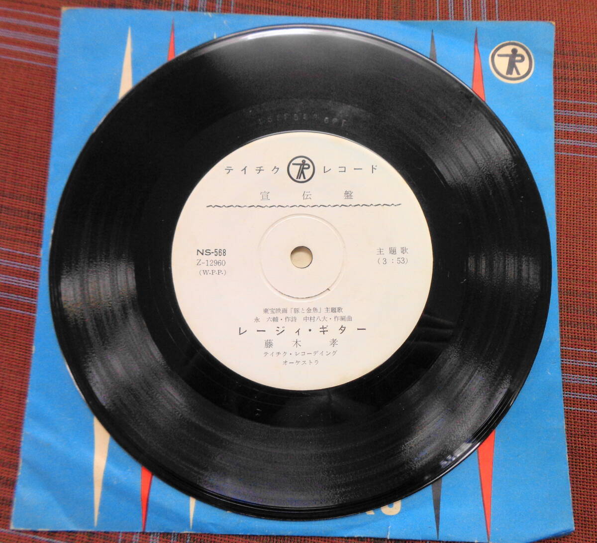 > e#6185◆EP◆ 藤木孝 レージィ・ギター / 踊れツイスト プロモ盤 白ラべ 永六輔 中村八大 東宝映画「豚と金魚」 和モノ テイチク NS-568