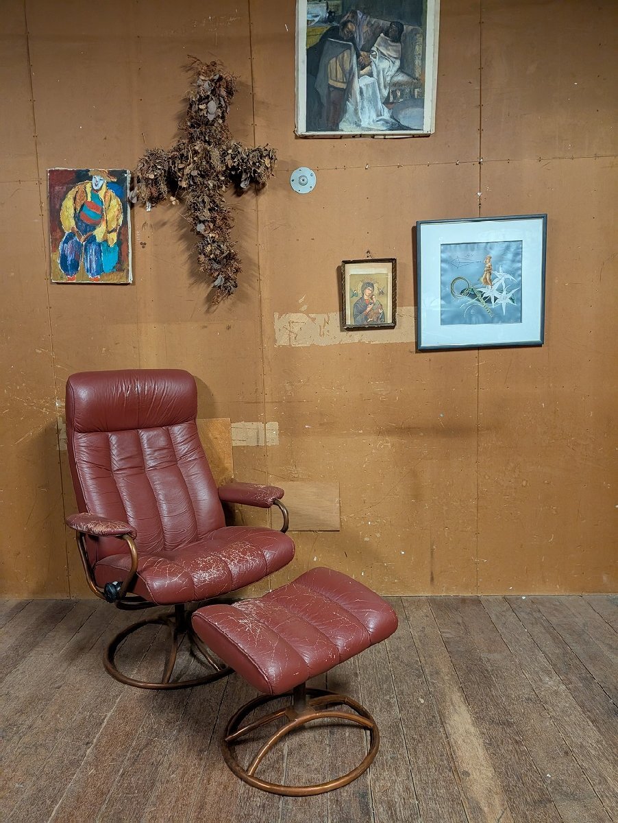 - 希少 ヴィンテージ EKORNES ノルウェー製 本革 ストレスレスチェア オットマン/北欧 エコーネス シェーズロング ブラウン 茶色