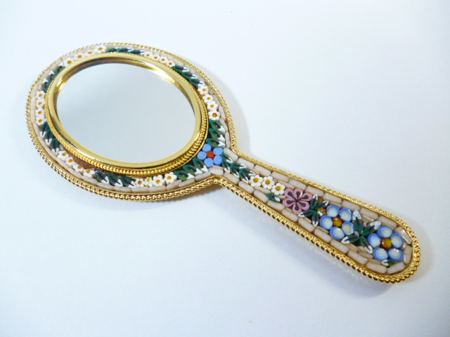 - β マイクロモザイク 手鏡 ミラー β ITARY 鏡 イタリア モザイク ガラス