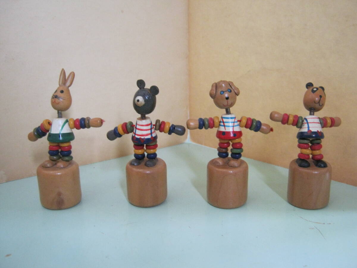 - 【動物(ウサギ/クマ/イヌ/パンダ)のプッシュパペット木製人形4種4体セット】