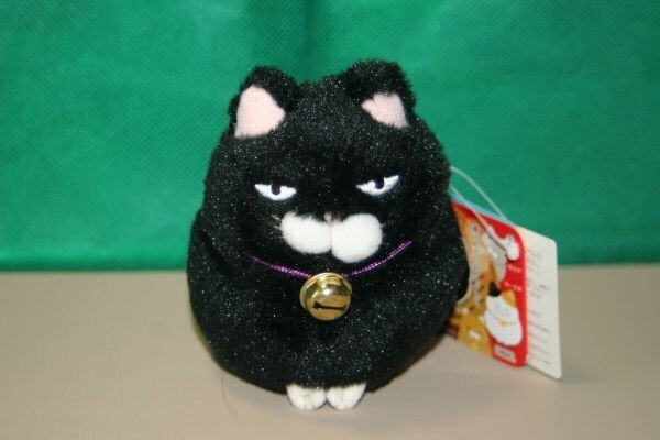 - ひげまんじゅう 黒豆 ボールチェーン付き ぬいぐるみ 約10.5cm 蒸したていかがですか? 黒猫 鈴