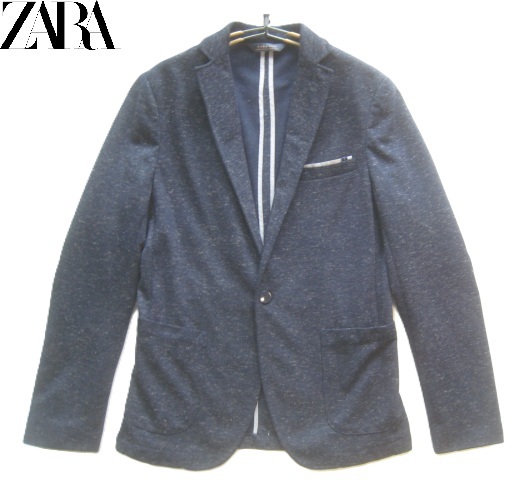 > 美品トルコ製!!ザラ ZARA*美シルエット スウェット1つボタンジャケット 48 実寸M 紺ブレザー ネイビー トラッド アイビー