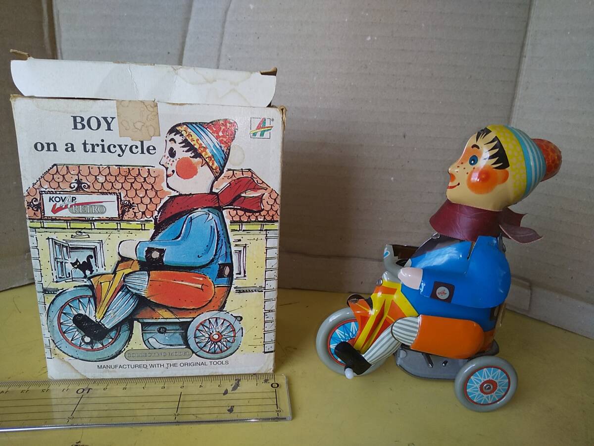 - 【ゼンマイなし】ブリキのおもちゃ、箱付、三輪車、こども、昭和レトロ?