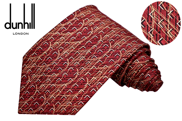 > N-2986★送料無料★超美品★dunhill ダンヒル★OLD ヴィンテージ レッド系 パターン柄 光沢 絹 シルクネクタイ