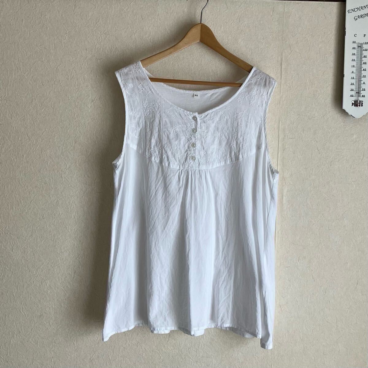 - 無印★美品★良品計画★ノースリーブ★刺繍★ホワイト★M〜L★綿100%★コットン★匿名発送★送料込