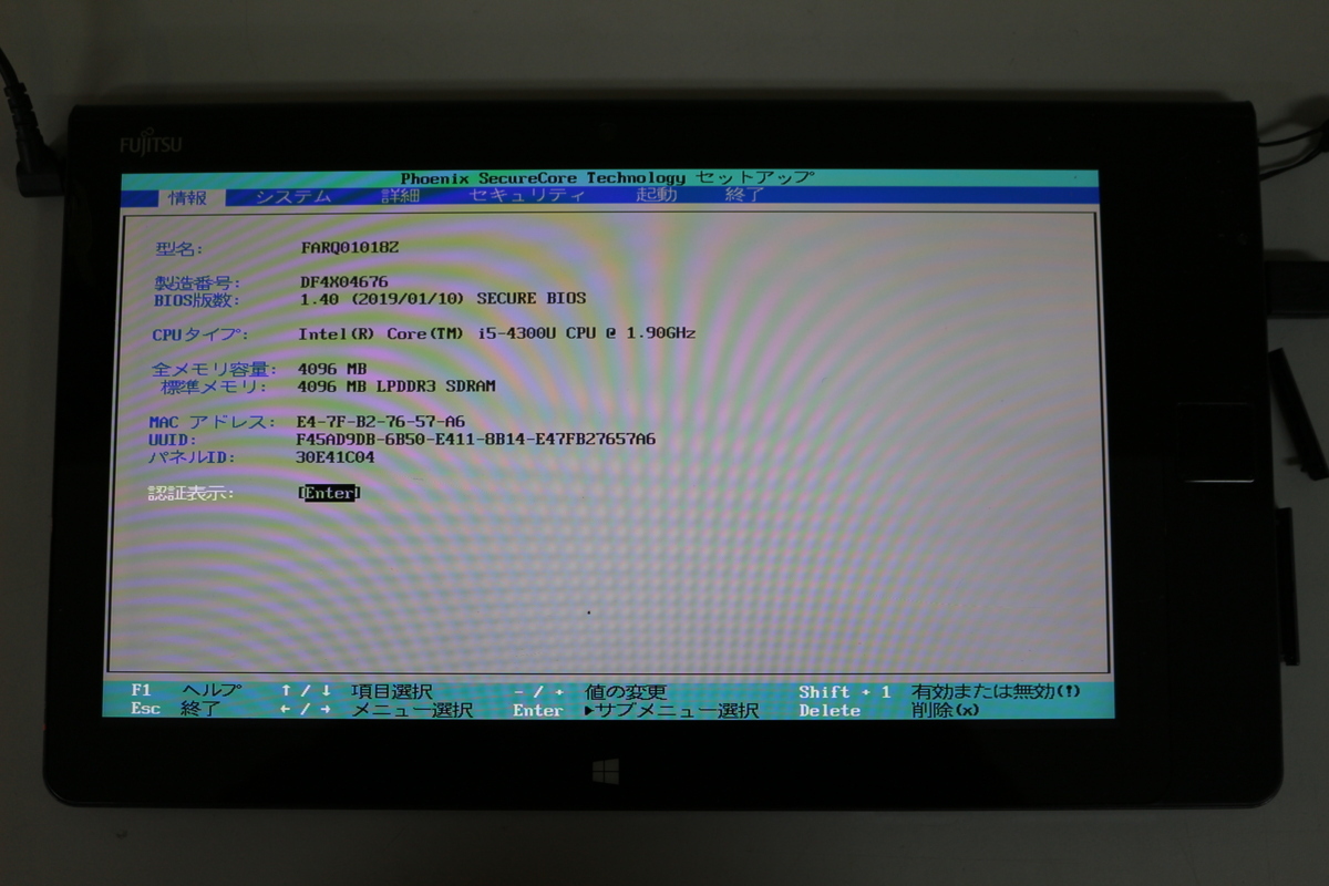 > ジャンク品タブレット 富士通 ARROWS Tab Q704/PV FARQ01018Z i5 メモリ4GB SSD128GB 12.5inch カメラ内蔵 OS無 起動確認済 代引き可