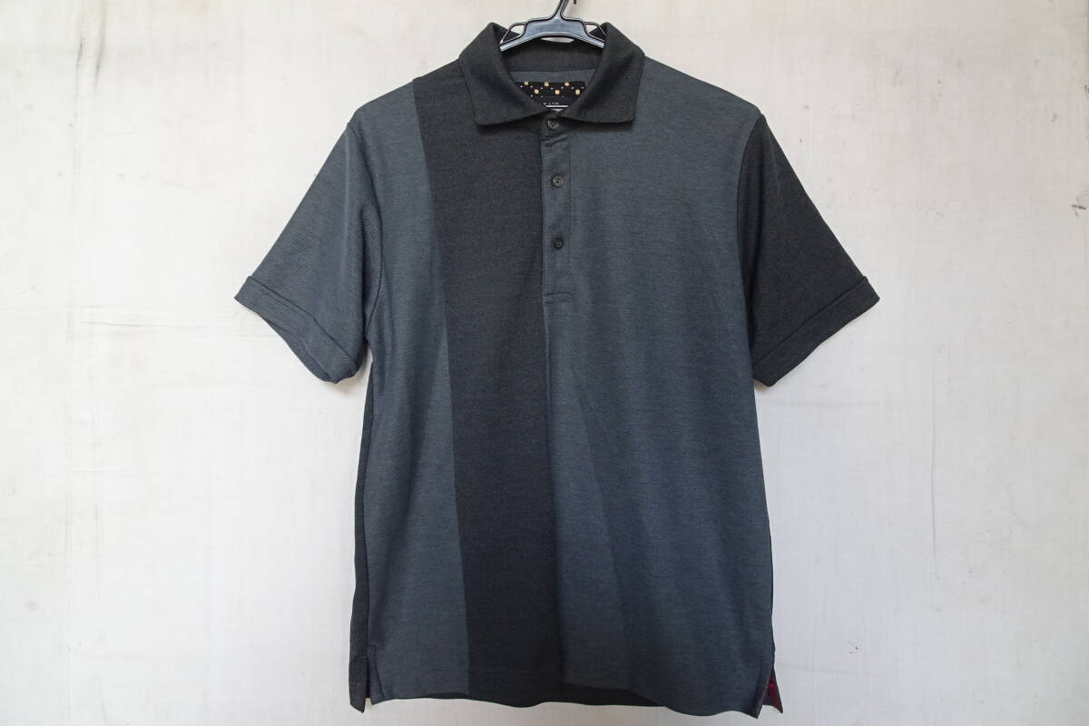 > TAKA Q/タカキュー/半袖ポロシャツ/鹿の子素材/濃淡のあるグレー配色/裾サイドスリット/チャコールグレー/Lサイズ(5/27R7)