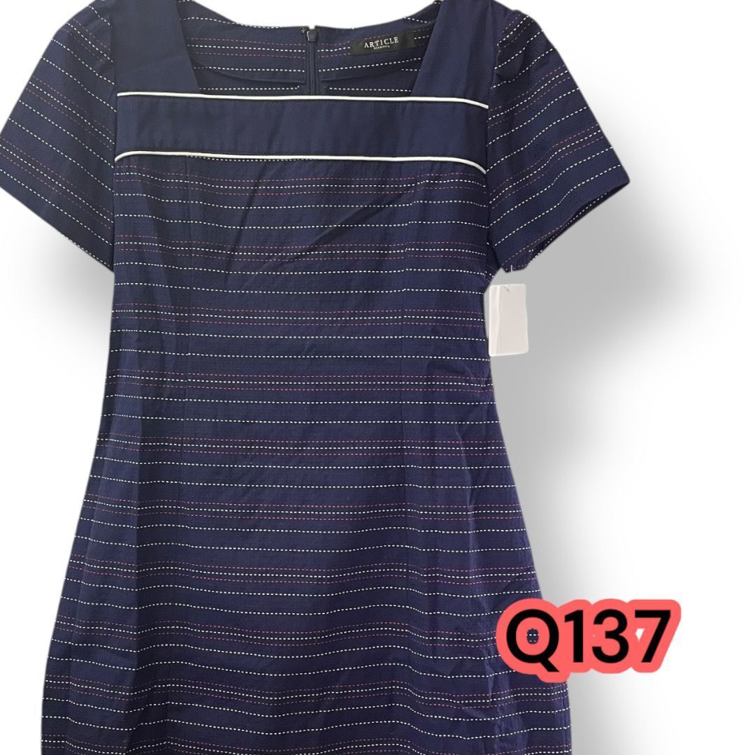 - ARTICLE(アーティクル) ボーダー ネイビー フレンチスリーブ 半袖ワンピース 13号 管理Q137