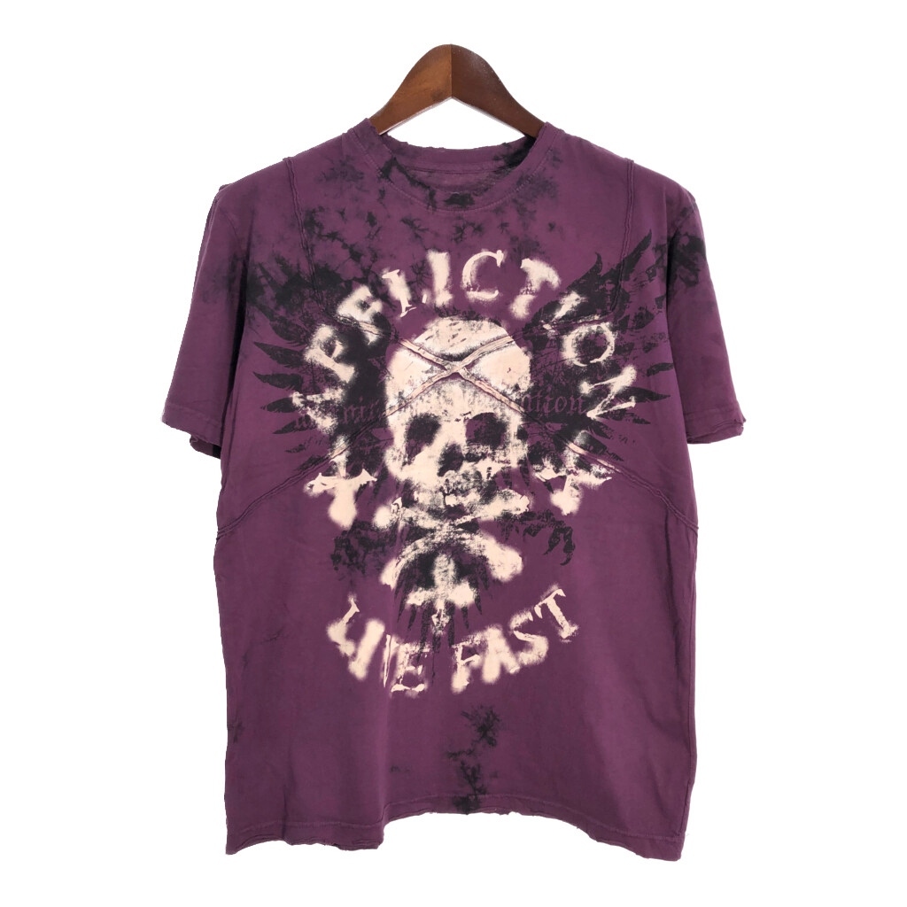 > AFFLICTION スカル ガイコツ ドクロ 大判プリント 半袖Tシャツ Y2K パープル(メンズ L)中古 古着 U2191