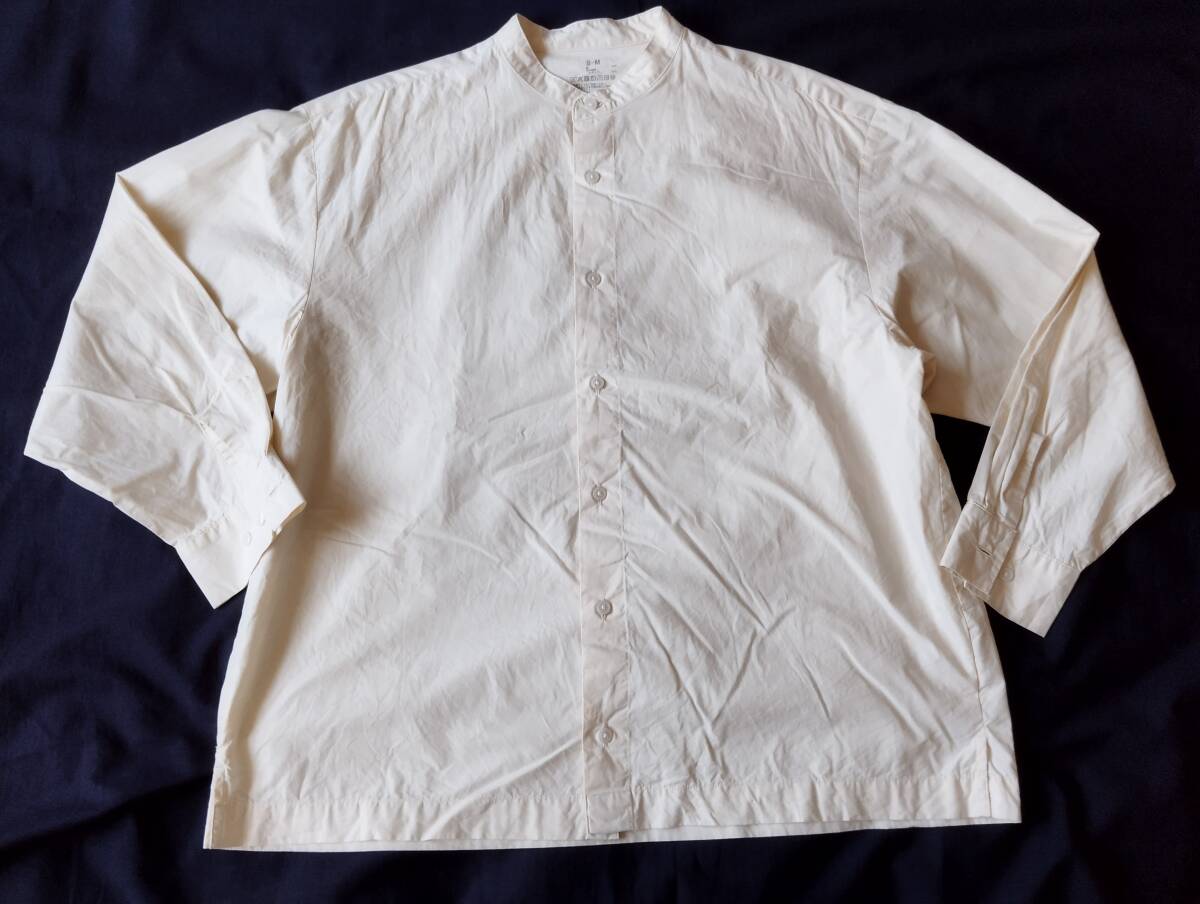- 木の実から作ったカポック混 バンドカラーシャツ S-M
