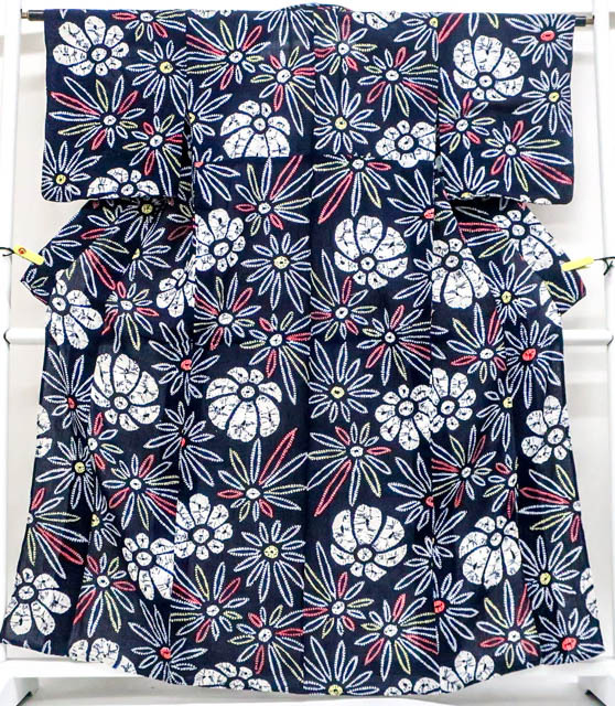 - 《京都一輝堂》【着物】浴衣 有松鳴海絞り 昭和レトロ 花柄 身丈約162cm 裄丈約63cm r7z05-454