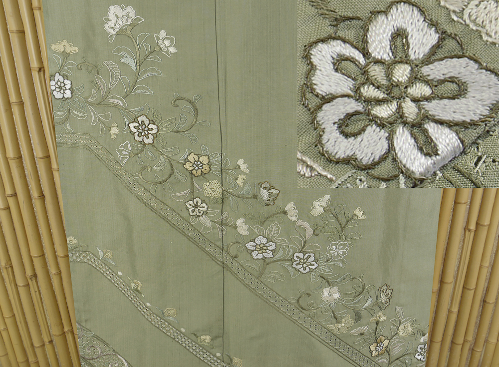 > 【京かんざし】x-87★単衣★中国三大刺繍 汕頭・蘇州刺繍 白山紬 訪問着 総刺繍身丈156 cm裄丈65.5 cm★即決送料無料!
