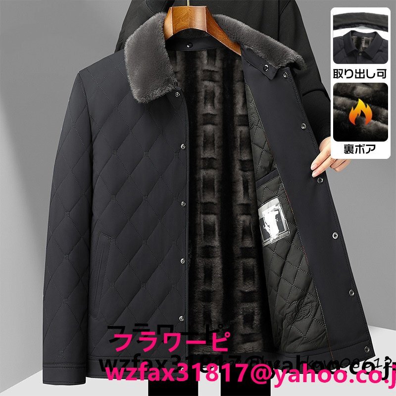> ◆秋冬の最新スタイル◆ダウンコート 裏フリース メンズ 厚手 防寒 ビジネスコート セレブ ダウンジャケット 紳士服 スーツ ブラック L