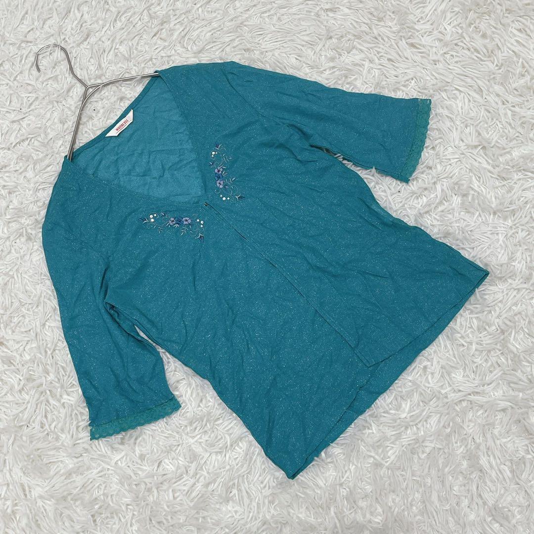 - 日本製 『メトリーゼ』 (9) 7分袖カーディガン Vネック 花柄刺繍 袖レース
