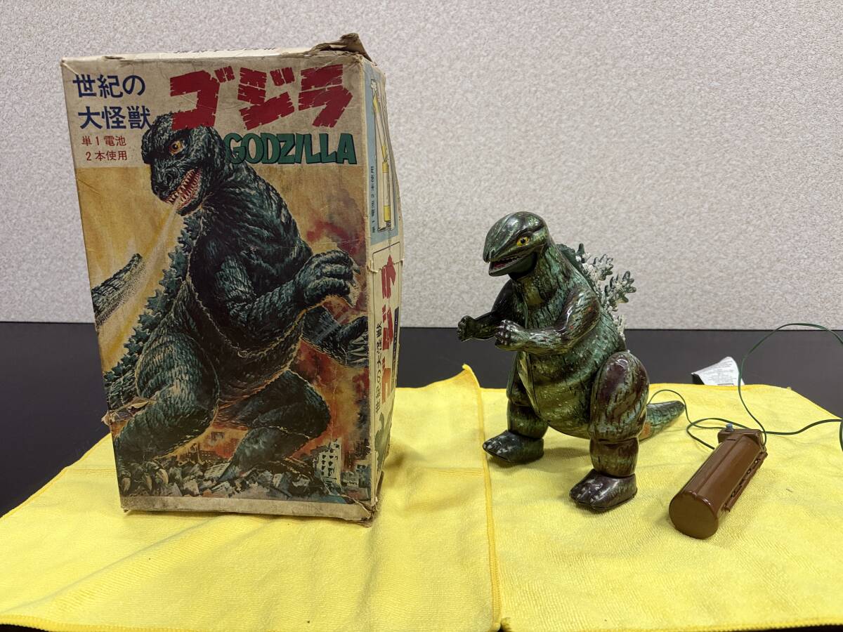 - ◆ ゴジラ 箱付き 電動リモコン歩行(動画あります) BULLMARK ブルマァク ブリキ 点滅・歩行動作確認済 昭和1970年代 当時物 レトロ ◆
