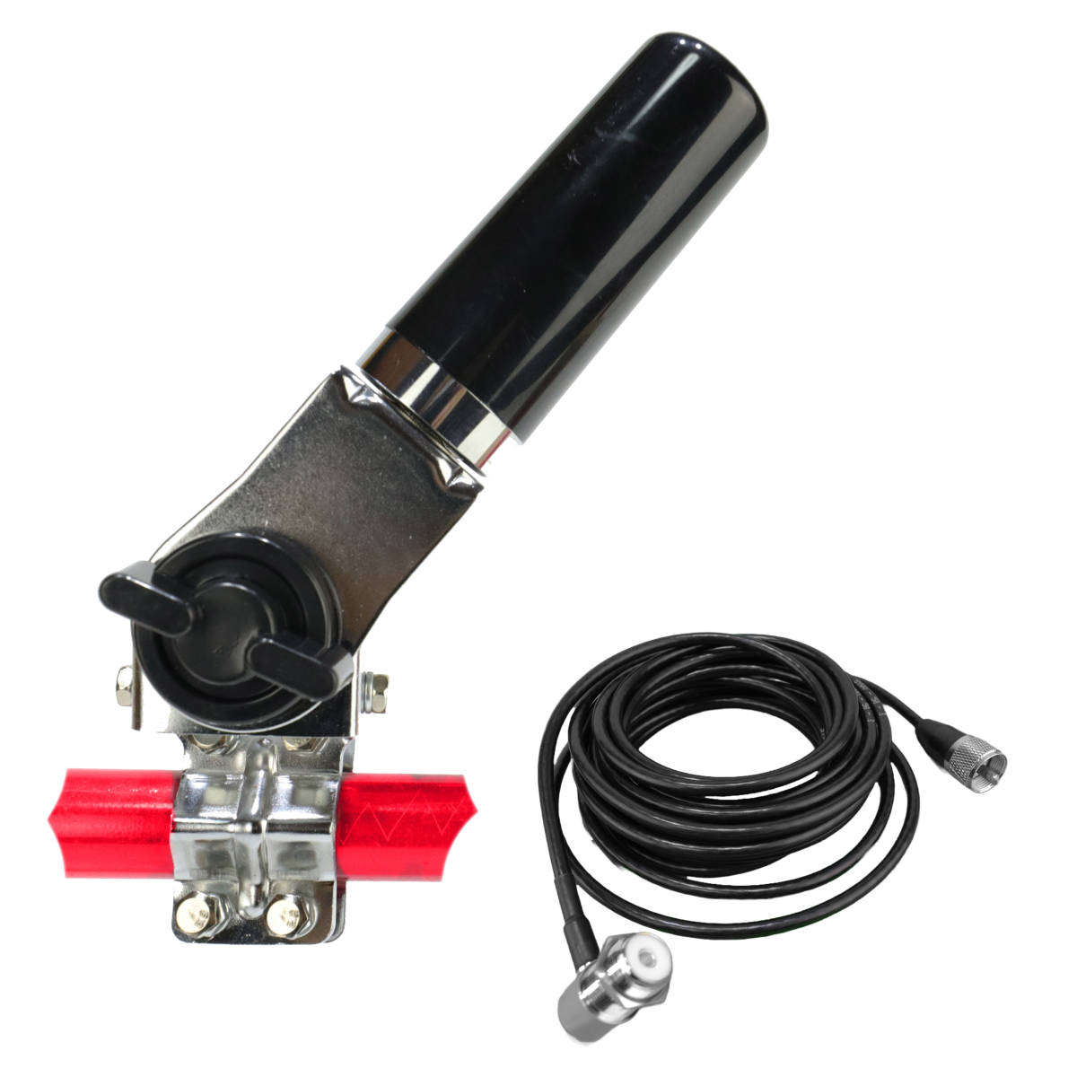 > 144/430MHz帯 9cm極太ショートアンテナ+ルーフトップ キャリアアンテナ基台(シルバー)RB-46+RG58(3D-2V相当)同軸ケーブル5m MJL-MP接栓