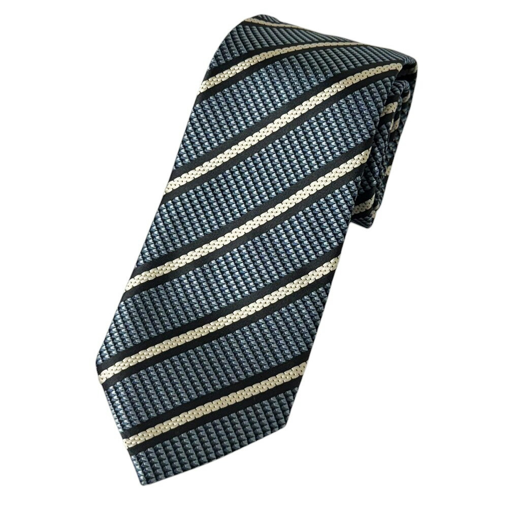 - 未使用 ゼニア ブランド ネクタイ エルメネジルド・ゼニア 高級 シルク 100% ストライプ ブルーグレー アウトレット