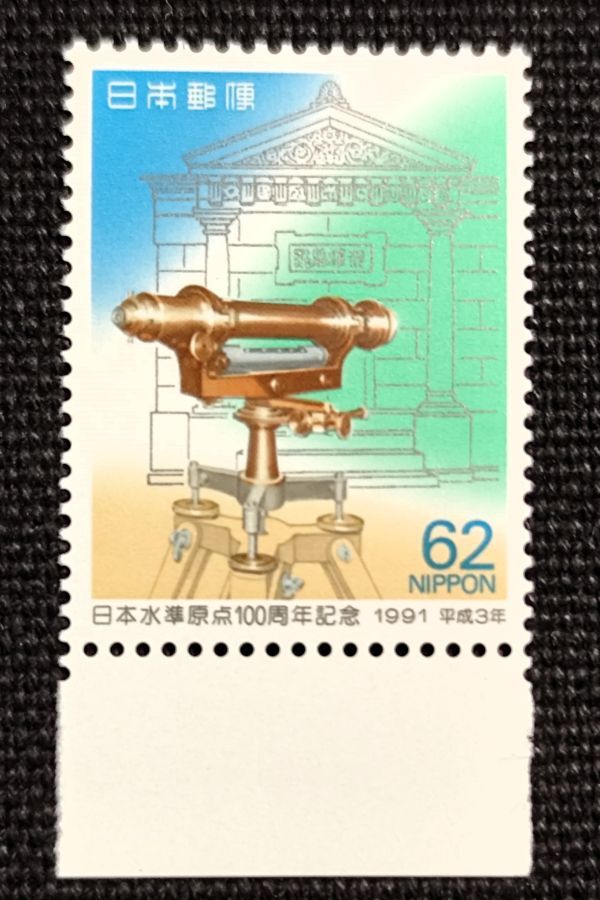 > [25053009]【日本水準原点100周年記念】単片「水準儀と日本水準原点標庫」62円 1991年発行 美品