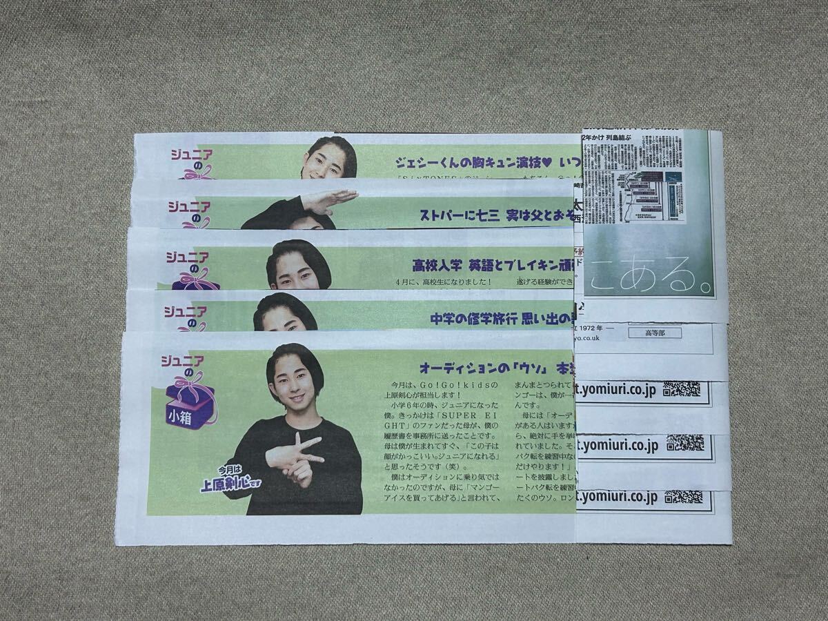 - 読売中高生新聞 ジャニーズJr. 上原剣心(全5回) Go!Go!kids コラム オフショット