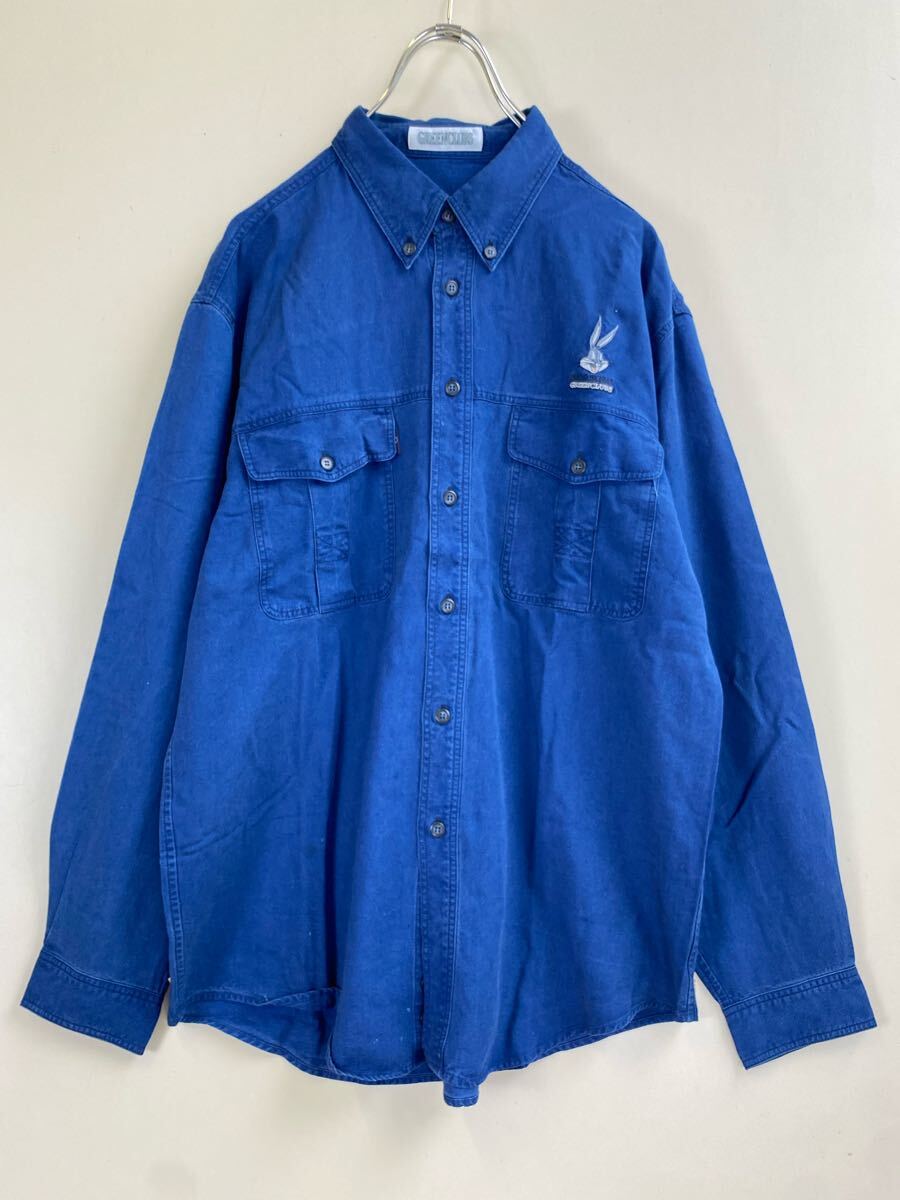 - ★90s バッグスバニー × グリーンクラブ ボタンダウン 長袖シャツ インディゴ サイズ4◆ ヴィンテージ オールド GREENCLUB◆W13 いKSY3-04