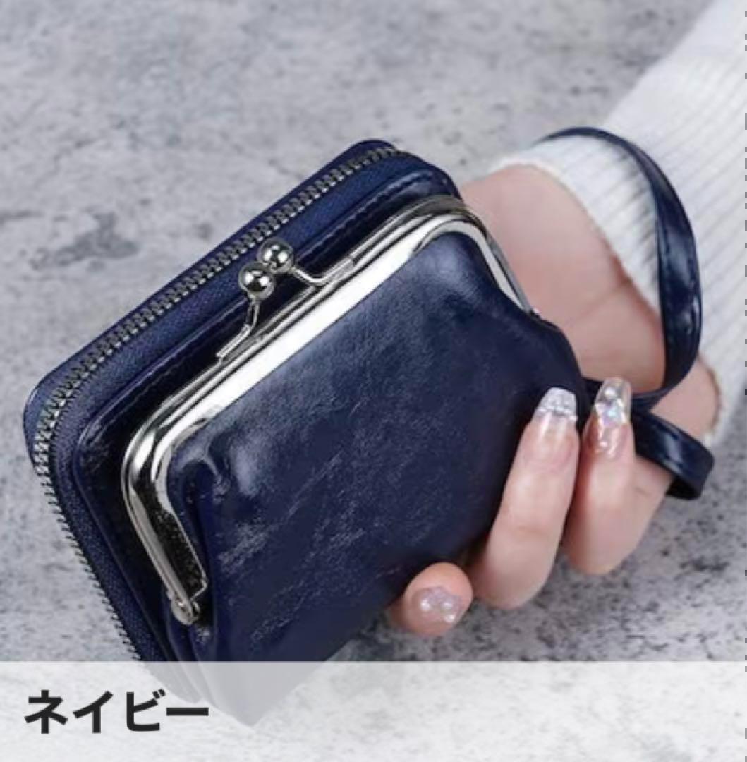 - レディース 財布 がま口 多機能 ミニウォレット カード入れ 大容量 小銭入れ ネイビー