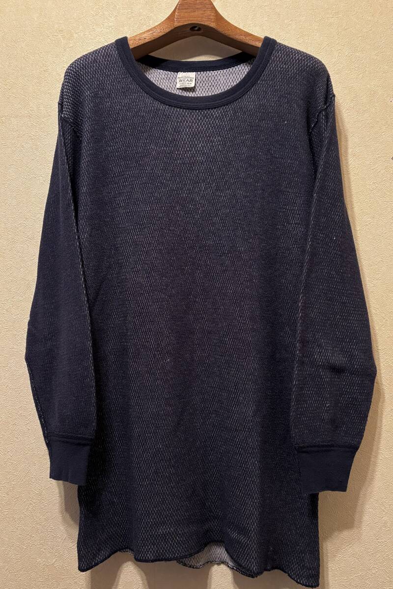 - USA製90s80sビンテージJ.E.Morganサーマル長袖ロングTシャツXLヘビーウェイト紺コットン/白ポリWフェイス米国製US製90年代80年代JEモーガン