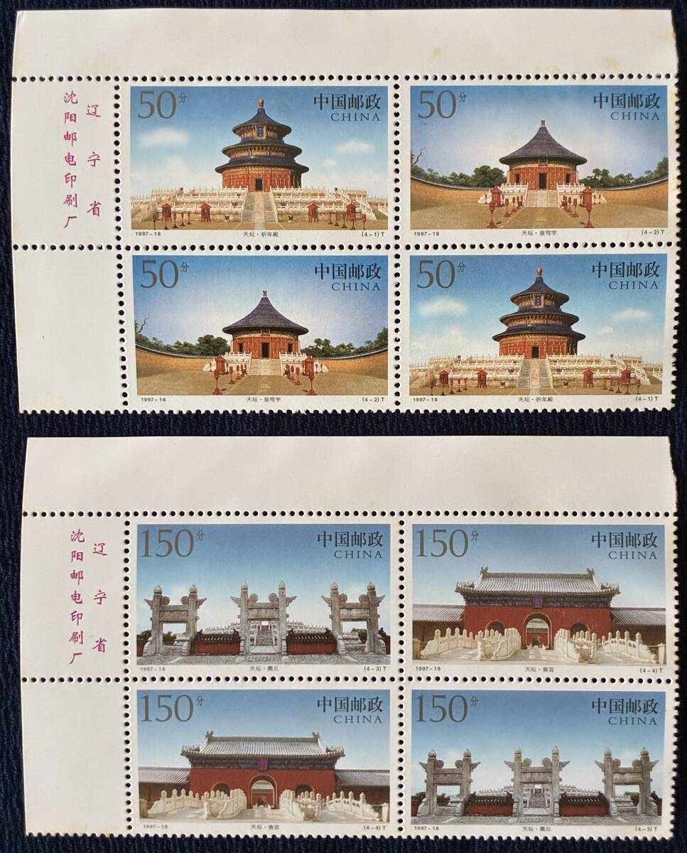 - 新中国切手ー未使用 1997-18T 4種完ペア 2種連刷×2田形 廠銘耳付き