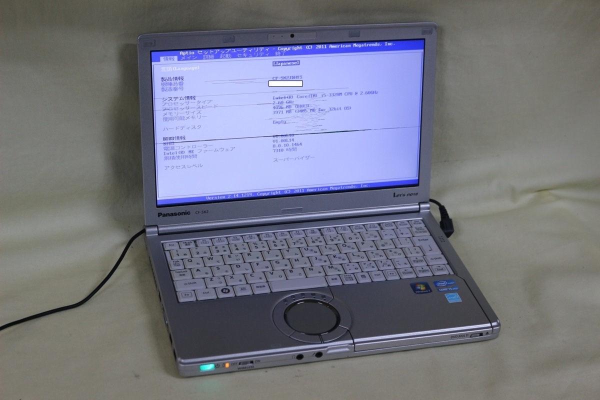- ジャンク品ノートパソコン Panasonic Let's note CF-SX2 Corei5 メモリ4GB HDD無 12.1inchワイド カメラ内蔵 起動確認済 代引き可