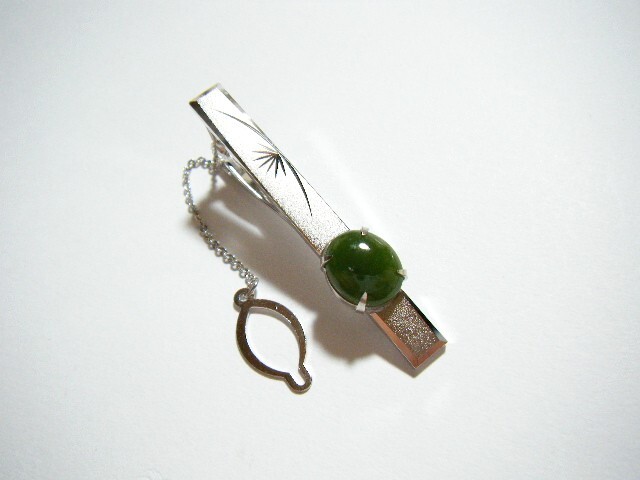 - ★ネフライト? ネクタイピン タイピン 緑色系 シルバーカラー 【BR9】