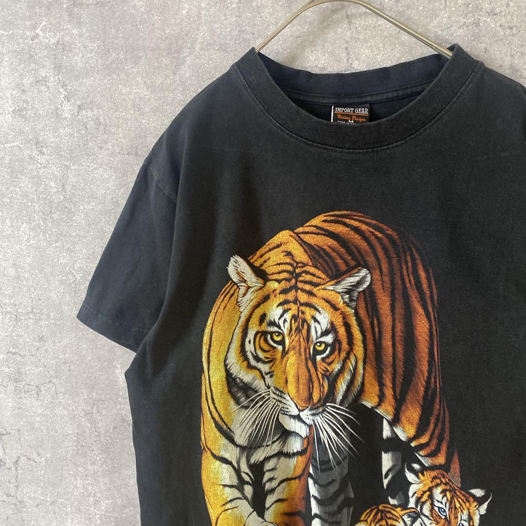 - IMPORT GEAR 古着 虎Tシャツ 黒 半袖 両面プリント Mメンズ