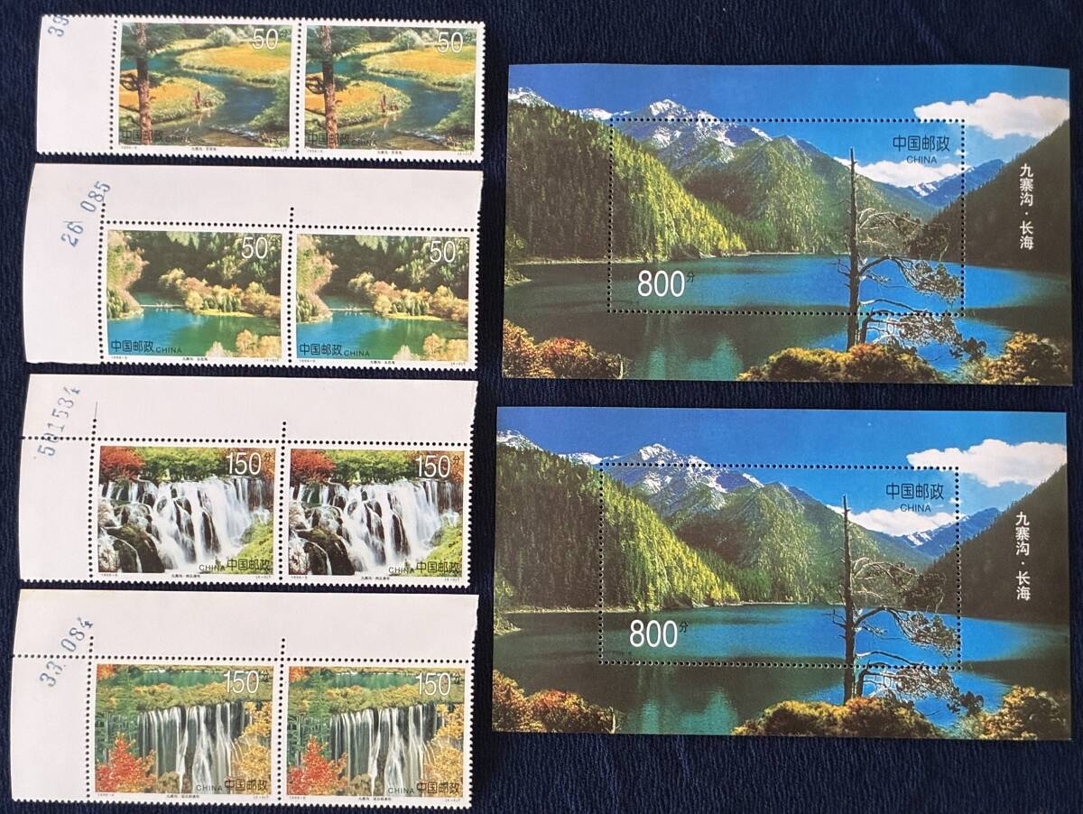 - 新中国切手ー未使用 1998-6T 九寨溝 4種完ペア 耳付き 1998-6TM 九寨溝小型シート 2シート