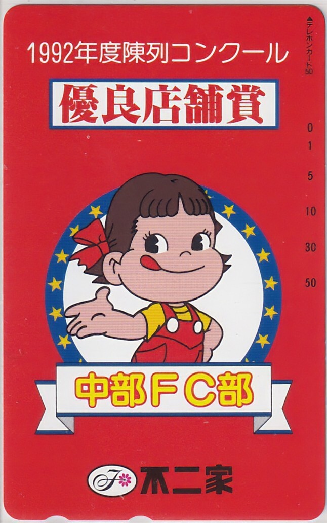 - =不二家 ペコちゃん= 「92陳列コンクール優良店舗賞 中部FC部」参加記念テレカ N30657