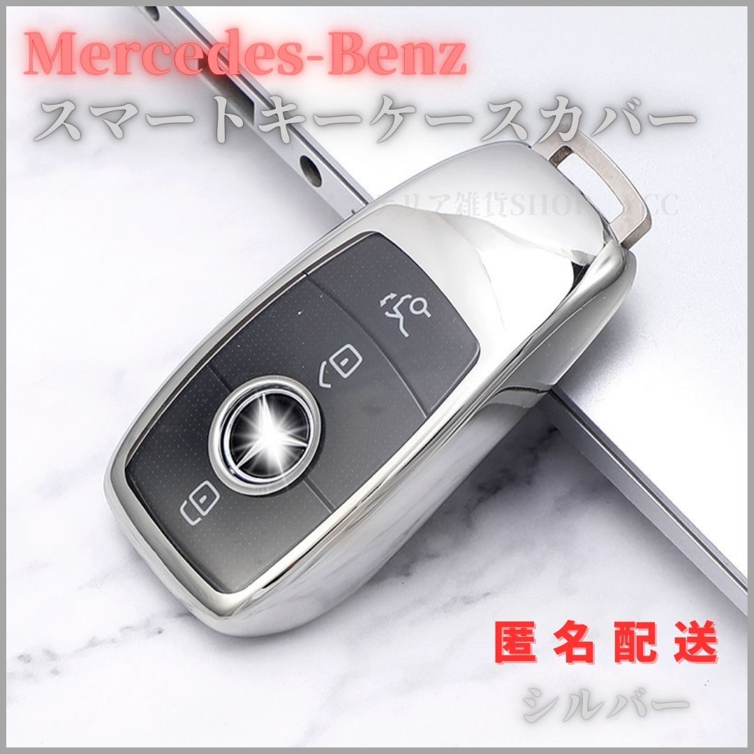 > キーケーススマートキーカバーメルセデスベンツ専用Eクラス Sクラス CLS Coupe CクラスBクラスAクラス CLA GLC GLE Gクラス クリア TPU 銀
