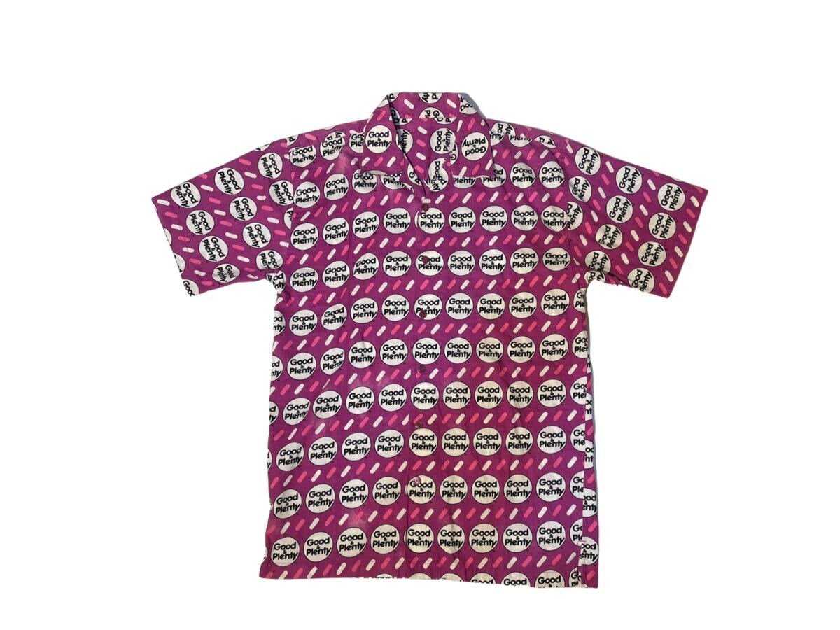> GOOD & PLENTY 総柄 開襟 シャツ グッド&プレンティキャンディー 企業 ビンテージ USA ハーゲンダッツ バドワイザー アロハ 90s 80s 70s