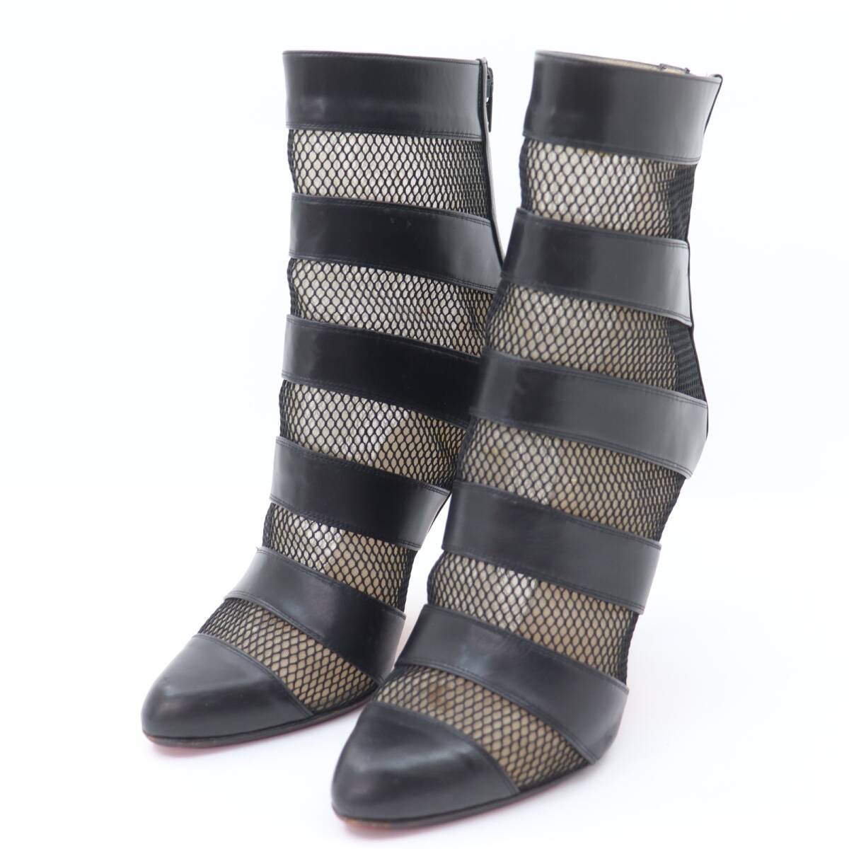 - ITCNT8CPTX8R 即決 本物 Christian Louboutin クリスチャンルブタン メッシュ レザー ブーツ ブーティ フィッシュネット ピンヒール 38 1/2
