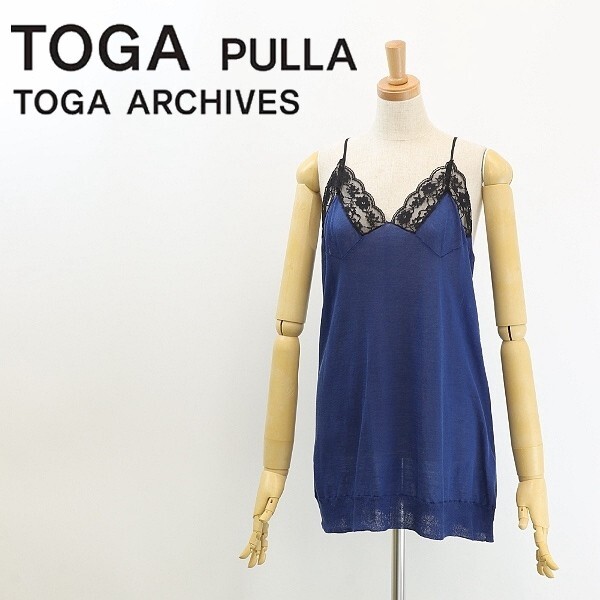 - ◆TOGA PULLA トーガ プルラ レース使い コットン ニット キャミソール 紺 ネイビー×ブラック M