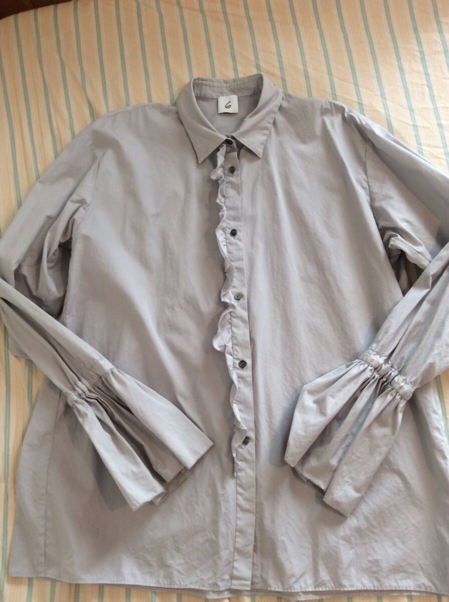 > ★上質春夏日本製【United ArrowsユナイテッドアローズBEAUTY&YOUTH】【6ROKU ロク】★グレーフリルブラウス★新社会人新入生旅行冷房対策