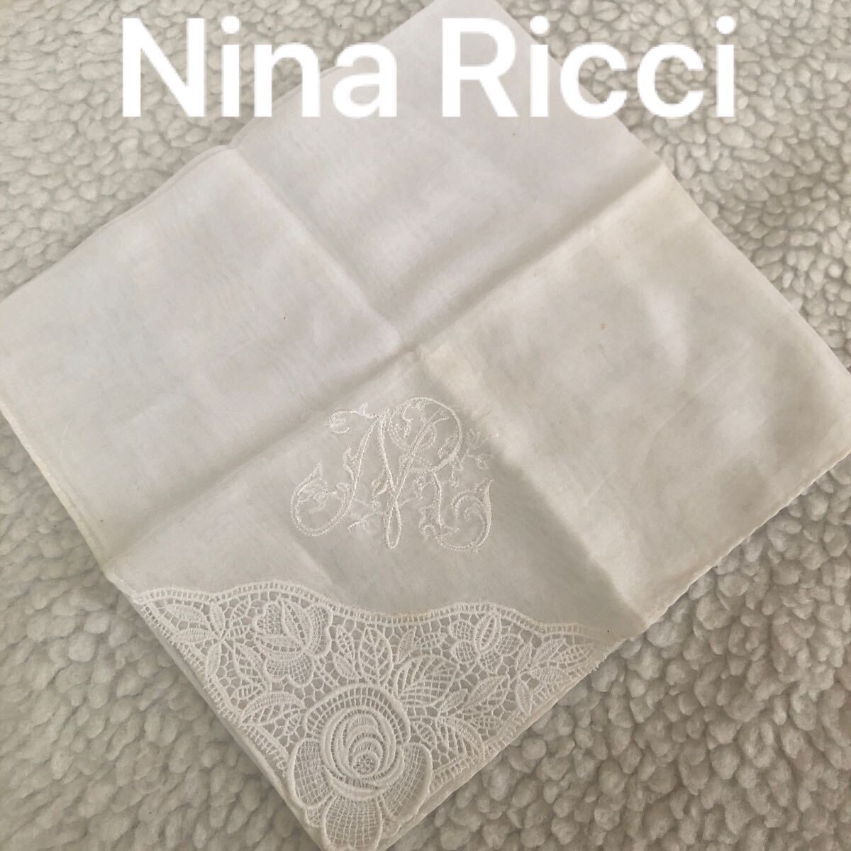 - 新品 レディース ハンカチ ニナリッチ 刺繍 花柄 ホワイト バラ レース 総レース