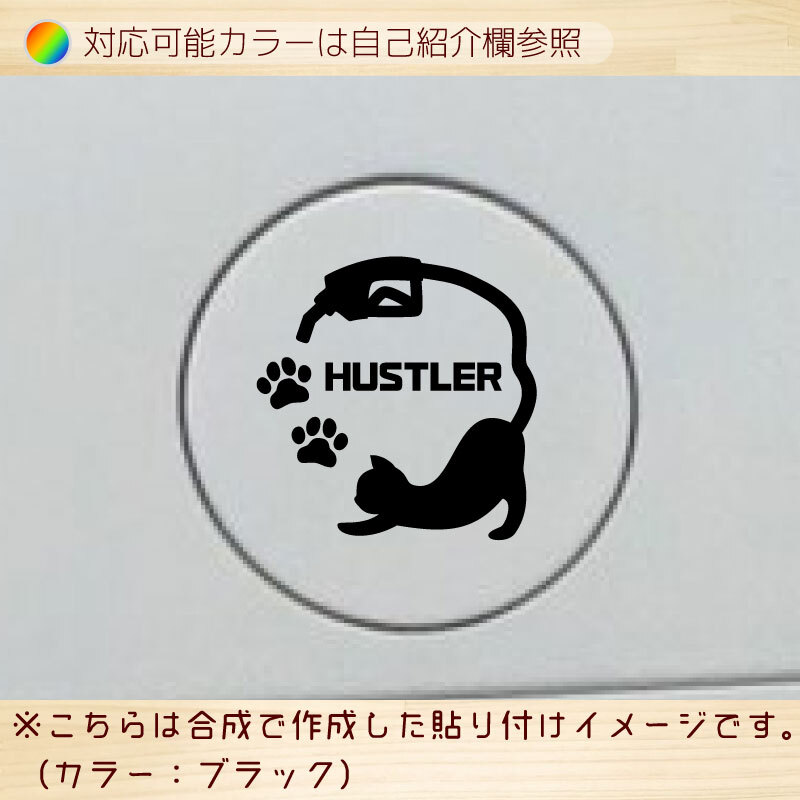 - 給油口-猫②HUSTLERステッカー 文字絵柄だけ残るカッティングステッカー・車・給油口・にゃんこ・ネコ・ハスラー