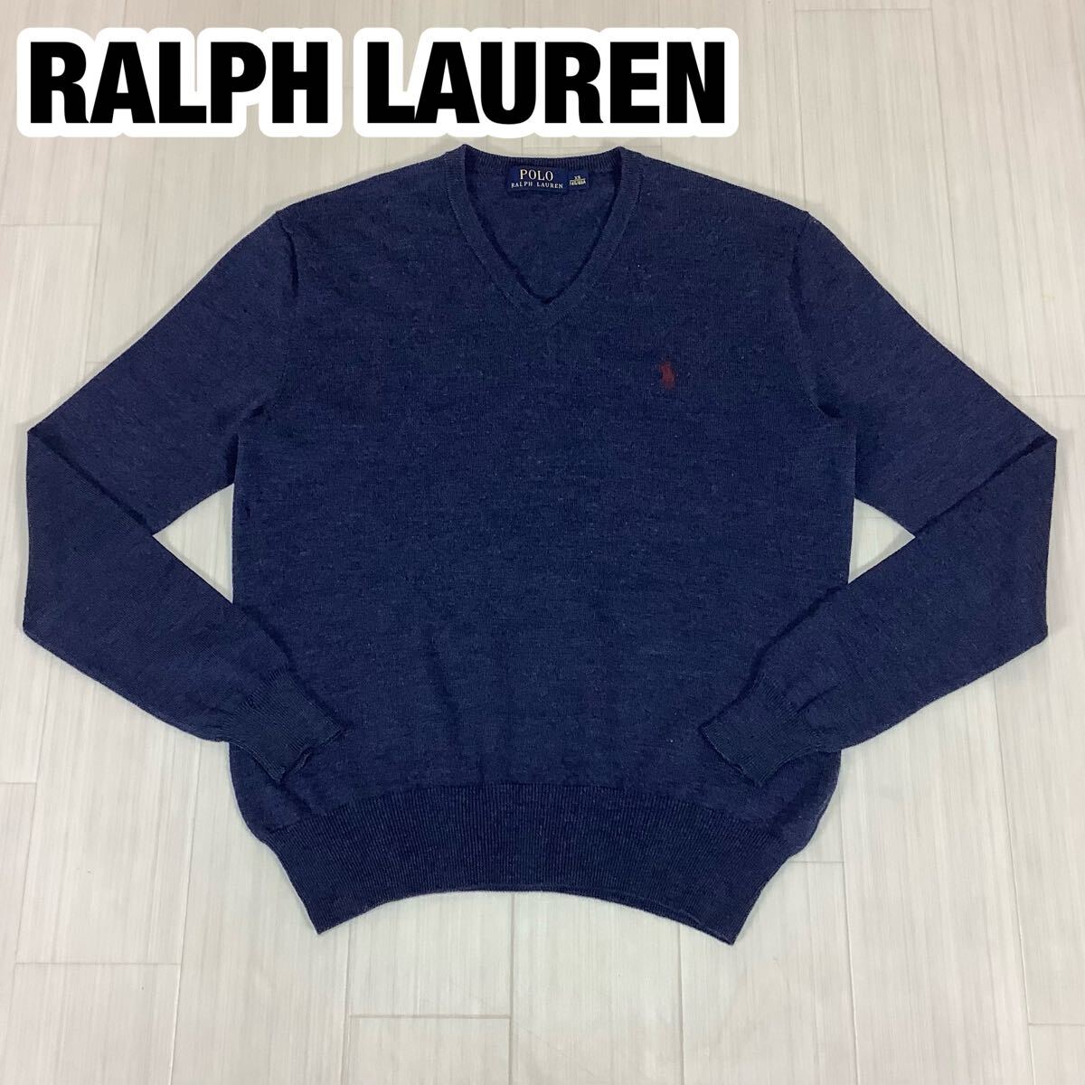 - POLO RALPH LAUREN ポロラルフローレン コットンニット Vネックニット XS ネイビー 濃紺 刺繍ポニー
