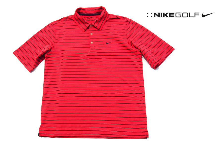- 送料無料★【中古】ナイキ ゴルフ|Nike|ストライプ柄半袖ポロシャツ|FIT DRY|L