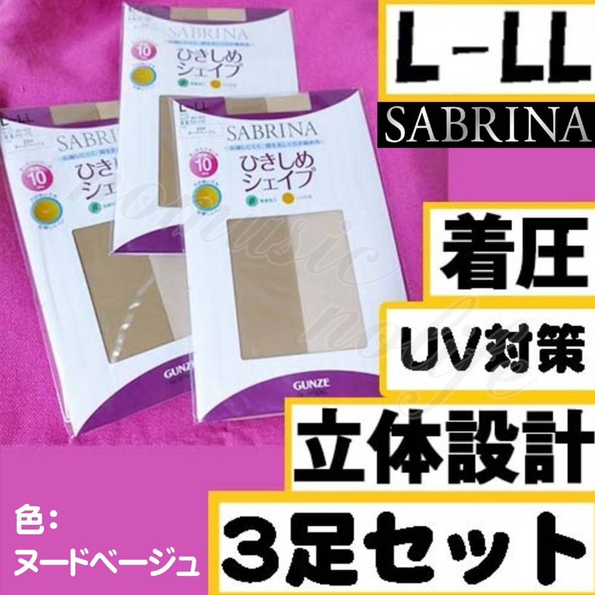 - 匿名★同梱歓迎【ZZZ】★SABRINA 着圧 立体設計 ひきしめシェイプ UV対策 3足セット ストッキング パンスト L-LL GUNZE ヌードベージュ