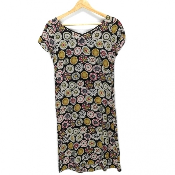 - シビラ Sybilla サイズL - 黒×白×マルチ レディース Vネック/半袖/ひざ丈 ワンピース