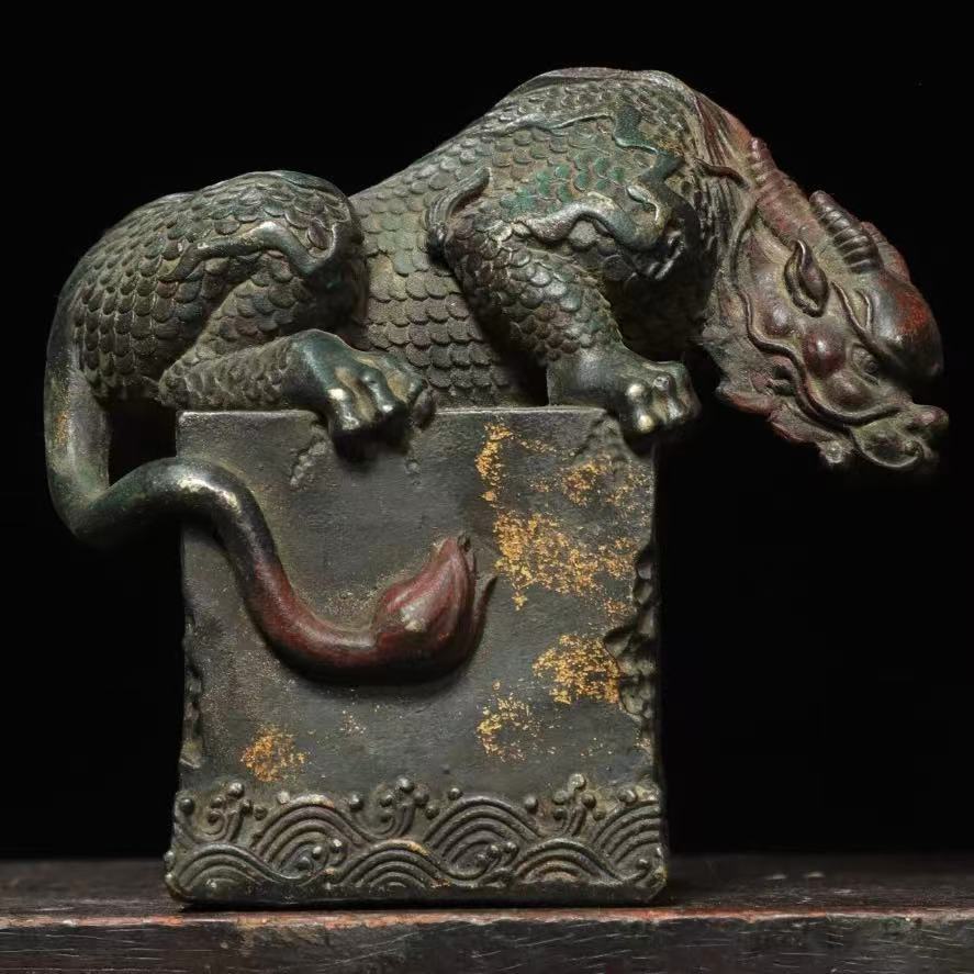 > 清代 藏 旧蔵珍品文案置物銅拓金【吸水獣】置物 文房具 仏教 銅製 銅琉金 唐物 收蔵品 時代物 古美術 古置物 希少珍品 供養品 6.3