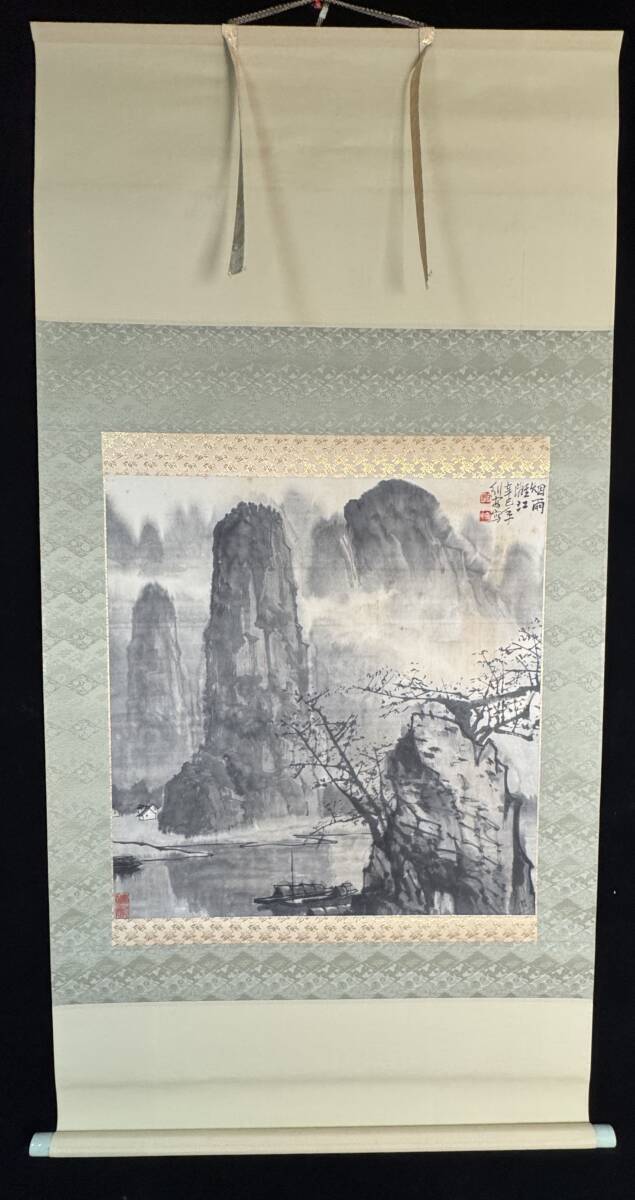 - 真作◆鳳】謝剣安◆水墨◆煙雨江◆紙本◆大幅◆掛軸◆肉筆256-26検:呉昌碩 斉白石 浮世絵 中国書画 日本画 書道 山水