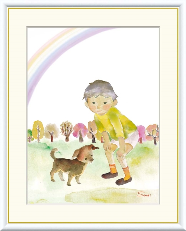 > 高精細デジタル額装版画 現代アート Saori 彩りの世界 榎本 早織 (えのもと さおり) 「 少年と子犬 」 サイズ F4号