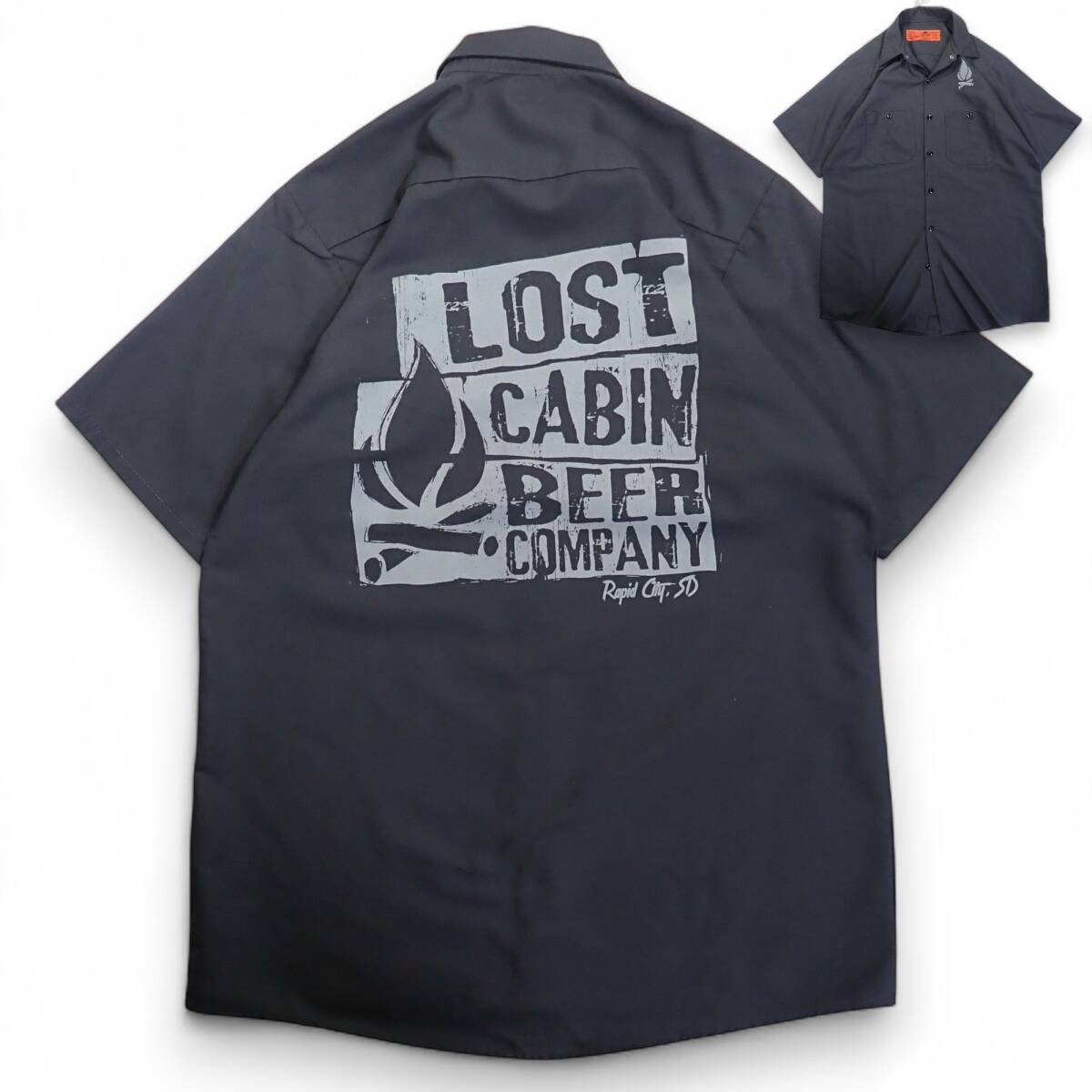 > 6694/美品 RED KAP 半袖ワークシャツ M●LOST CABIN BEER COMPANY Rapid City SDプリント レッドキャップ●洗濯プレス済●ネコポス可●古着